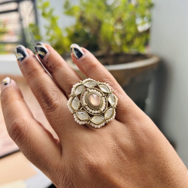 Pearl Kundan Floral Cocktail Ring – Party Wear Adjustable Ring
