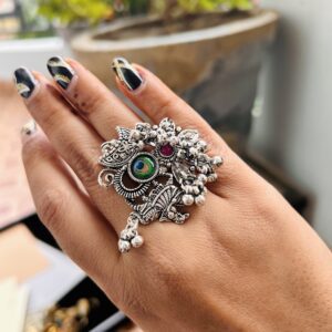 This Pearl Kundan Floral Cocktail Ring is the perfect blend of tradition and modern glamour. Crafted with delicate pearl beading, kundan stones, and a unique floral design, this ring instantly elevates your festive and party outfits. Its adjustable size ensures a perfect fit for every woman, making it versatile and comfortable to wear. Ideal for weddings, sangeet nights, festive occasions, or cocktail parties, this ring makes a statement without being too heavy. Pair it with ethnic sarees, lehengas, or Indo-Western dresses to create a truly elegant look.
