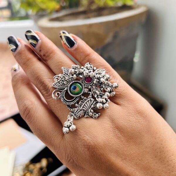 Silver Peacock Design Cocktail Ring – Party Wear Adjustable Ring